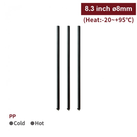 8.3 inch PP Straws-Black(8mm)-3,500pcs