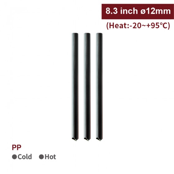 8.3 inch PP Straws Wrapped -Black(12mm)-2,250pcs