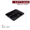 【PP - Square Meal Container - 5 - Compartments / Without Lid】22.4*17.8*3.5cm heat-proof can microwave black plastic take-away disposable - 800 pcs per box