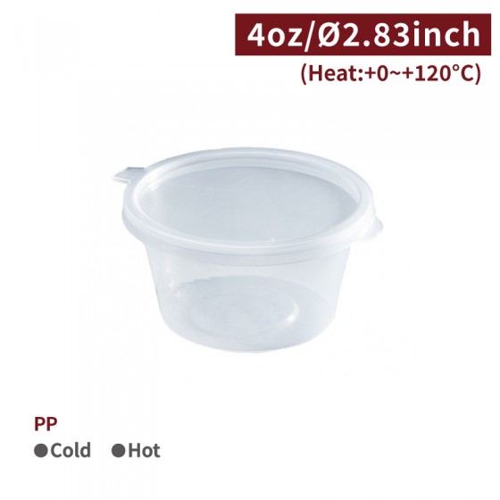 【PP Hinged Container 4OZ - Transparent】72 diameter *39mm separate food sauce cup flat lid - 500 pcs per box / 50 pcs per package