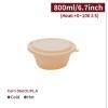 【Corn Starch Meal Container - 800ML 】beige with lid 169mm diameter can microwave not for oven - 200 pcs per box / 50 pcs per package
